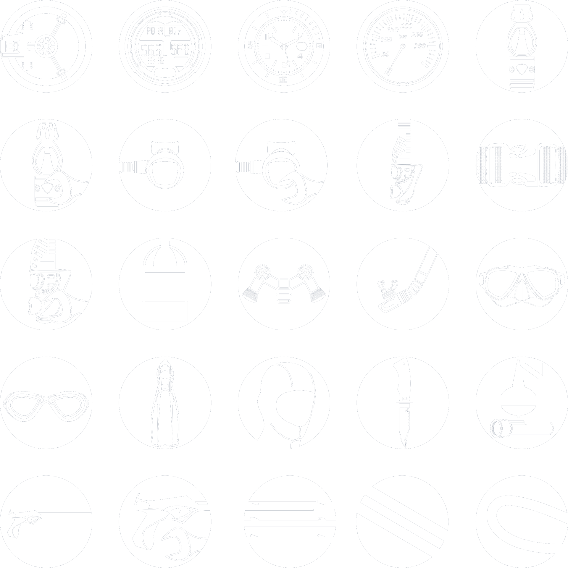 Un set di venticinque icone disegnate appositamente identifica gli argomenti di produzione della Cressi. Queste icone si ritrovano nei manuali tecnici rivolti ai centri di assistenza autorizzati, in particolare rubricano i capitoli dei manuali di manutenzione e il catalogo dei ricambi.