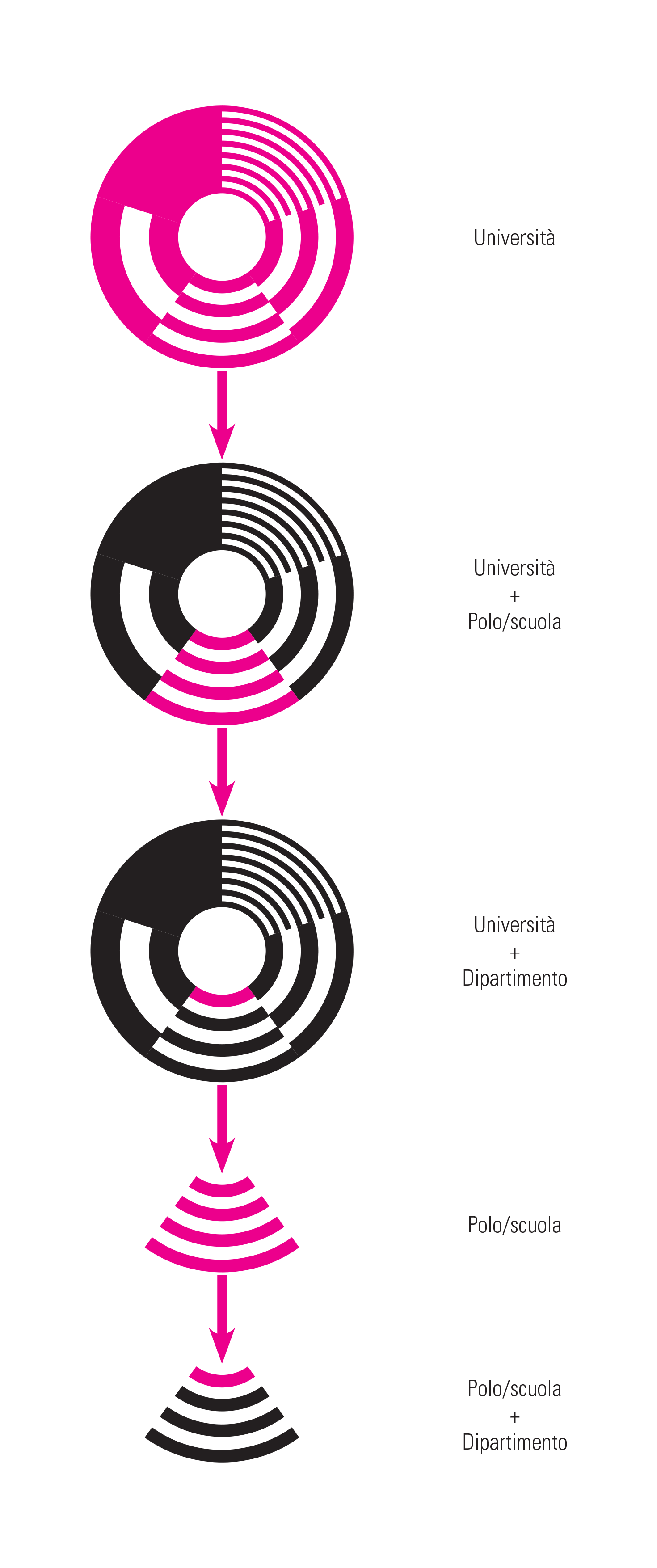 La sezione rappresenta il Polo o la Scuola di appartenenza, mentre la porzione si riferisce al Dipartimento.